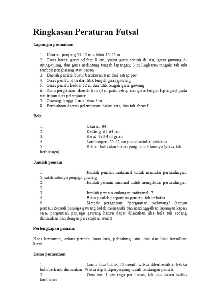 Ringkasan Peraturan Futsal Pdf